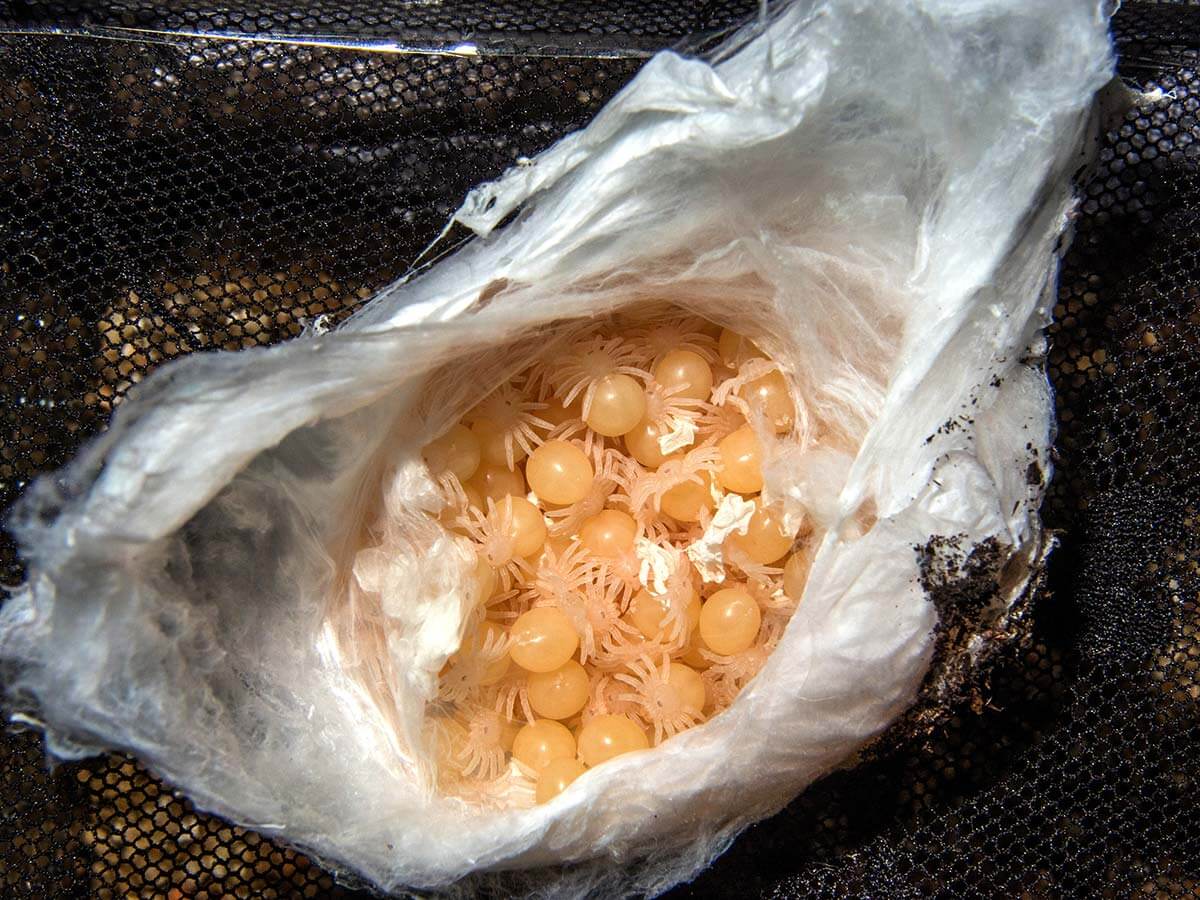 Le importanti riproduzioni in cattività. Apertura dell’ovisacco con i numerosi nati. Foto di Mattia Poso