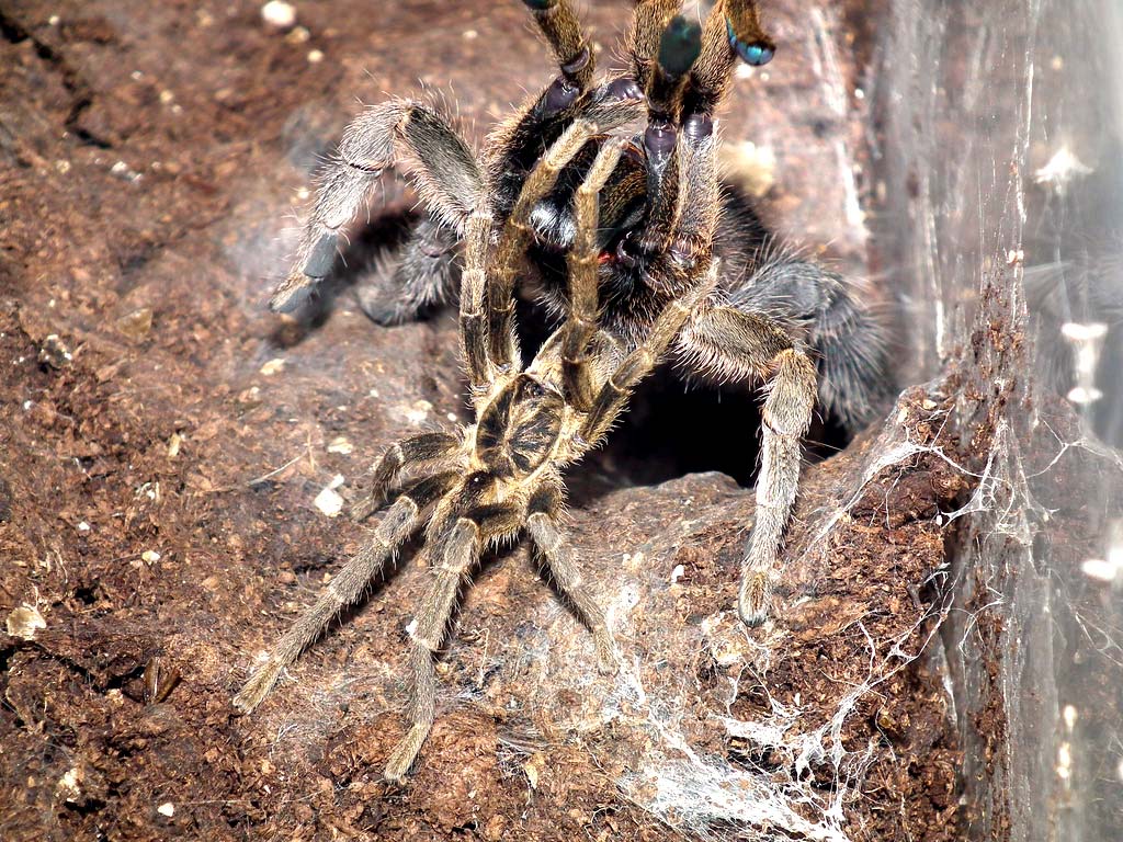 Ad esempio Chromatopelma cyaneopubescens viene generalmente considerata una migale semi-arboricola. Questo perché vive a livello del terreno, desertico e molto secco, ma sfrutta spesso arbusti, erbe secche e alberi per tessere i grandi drappi della sua tela su cui si arrampica. In questo caso, sarà sufficiente garantire che l’animale trovi un rifugio sul terreno, come una comune specie terricola, ma che possa contemporaneamente soddisfare le sue attitudini a sfruttare la verticalità della teca grazie all’aggiunta di strutture verticali come rami secchi o pietre.
