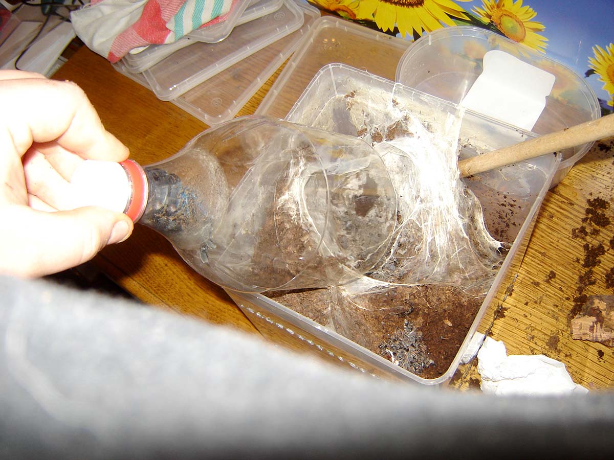 Nel caso in cui ci si trovi a che fare con una migale asiatica fossoria, un animale che quindi vuole un substrato molto alto e umido, ci si potrebbe imbattere nel problema del terreno marcescente. Se il contenitore presenta infatti soltanto delle griglie di areazione in alto, tutta l’acqua che verrà aggiunta alla torba andrà ad accumularsi sul fondo e non avrà possibilità di defluire. Un semplice trucco per evitare il problema di muffe e di cattivo odore consiste nel praticare dei piccoli fori sulla base della teca, da cui l’acqua stagnante potrà facilmente defluire, e aggiungere un sottile strato di ghiaia o palline di argilla sul fondo così che l’eventuale acqua di ristagno non rimanga molto a contatto con la torba.
