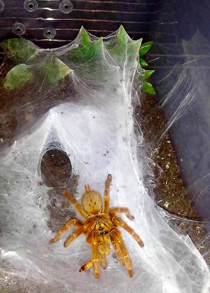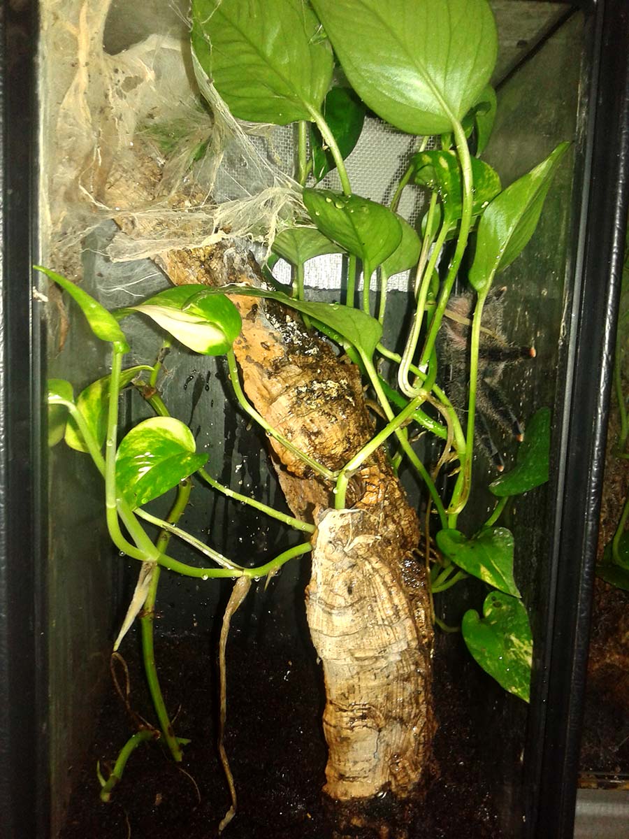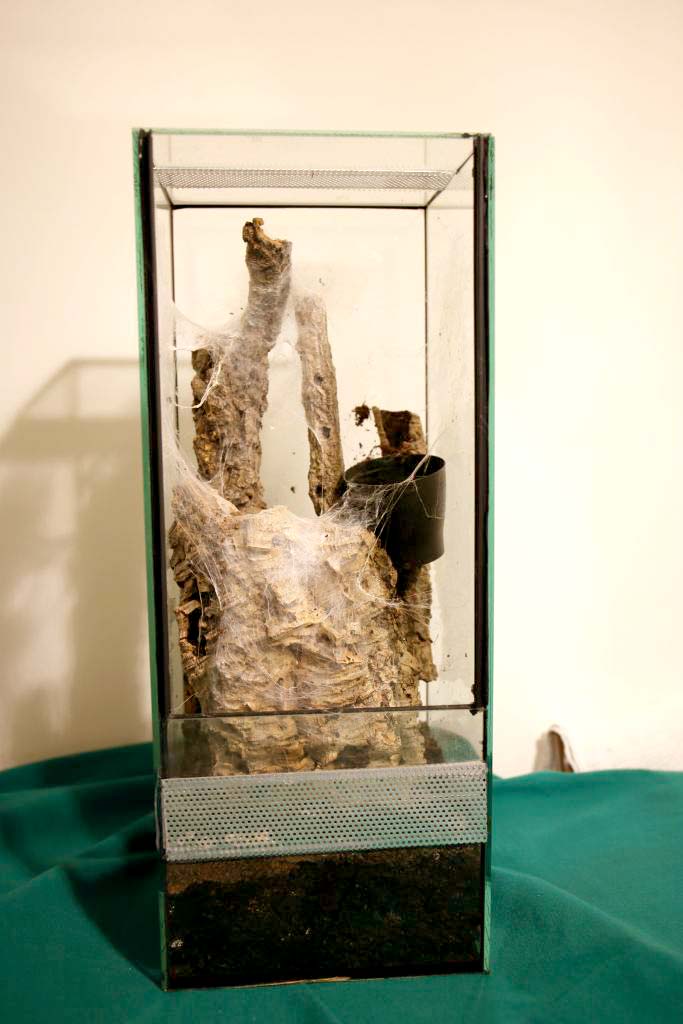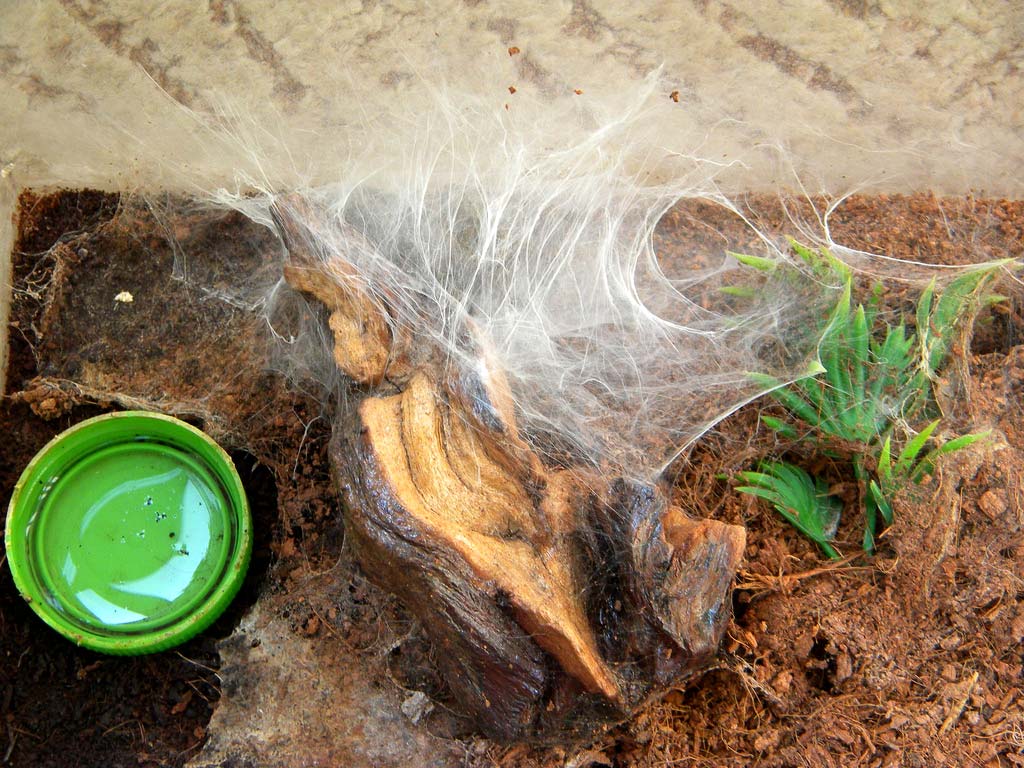 Un’altra eccezione è rappresentata da tutte quelle specie, tendenzialmente fossorie, in grado di produrre quantità importanti di tela all’ingresso della tana (Pterinochilus, Ceratogyrus, Chilobrachys…). In questi casi conviene, al fine di sfruttare al meglio le doti dell’animale ed ottenere un effetto estetico migliore, offrire al ragno anche la possibilità di tessere su opportuni supporti razionalmente posizionati sul substrato nei pressi del riparo (come ad esempio rametti in obliquo o in verticale).