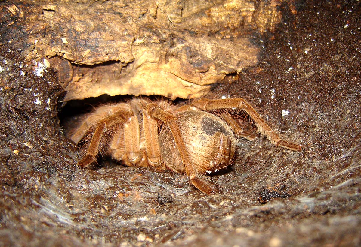 Come tana, potrà essere inserita nel terrario una corteccia di sughero disposta orizzontalmente o una qualsiasi alternativa che garantisca un riparo sicuro e, eventualmente, un effetto estetico piacevole. È sconsigliato offrire al nostro animale arredi reperiti all’esterno e non sanitizzati in quanto questi potrebbero essere veicolo di muffe o parassiti. La corteccia di sughero è la soluzione ottimale per allestire una teca in quanto è un materiale molto resistente all’umidità, non genera muffe o marcescenze, ed è stabile nel tempo. Contemporaneamente risulta abbastanza morbido e quindi non causerà danno alle migali che decideranno di morderlo o modellarlo con i cheliceri.