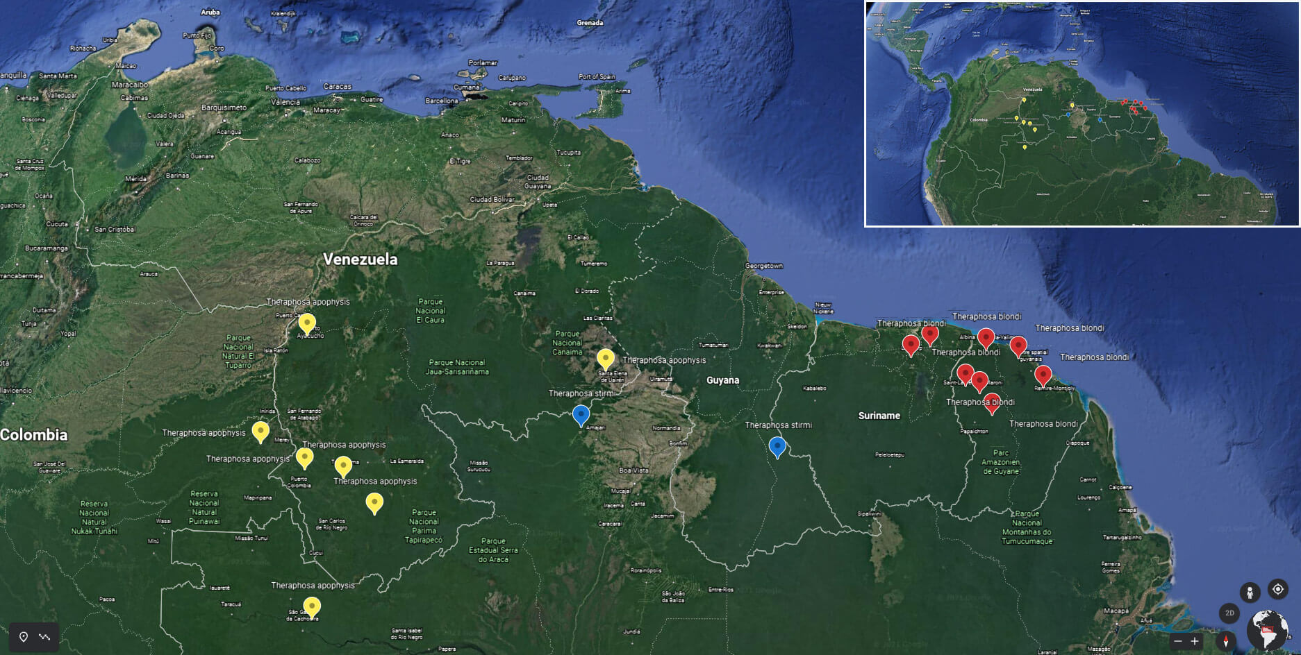 Relativamente alla prima descrizione, gli esemplari di T. stirmi provenivano dalla Guyana (da non confondere con la Guyana francese, paese in cui è invece diffusa T. blondi). Nel 2017 è stata riportata un’altra popolazione, questa volta dal Brasile non molto distante dal confine venezuelano (Fig.1).